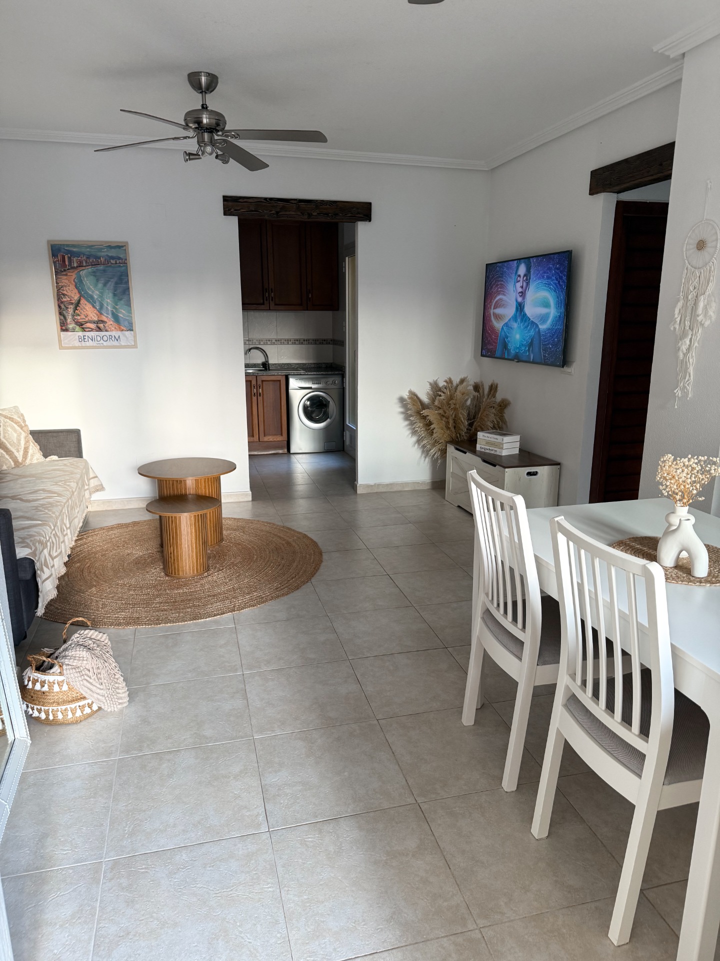 Celý apartmán je sladěn do minimalistického boho stylu s palmovou zahradou, dvěma ložnicemi a velkou plně vybavenou kuchyní. Jeho nespornou výhodou je také velký bazén s brouzdalištěm, v naší uzamčené ulici, který máme 50m od vchodu. Pro ještě lepší prožitek z dovolené bez starostí si můžete zapůjčit také náš vůz, se kterým samozřejmě zaparkujete přímo u domu. Nabízíme tak dokonalé pohodlí pro 4 osoby.